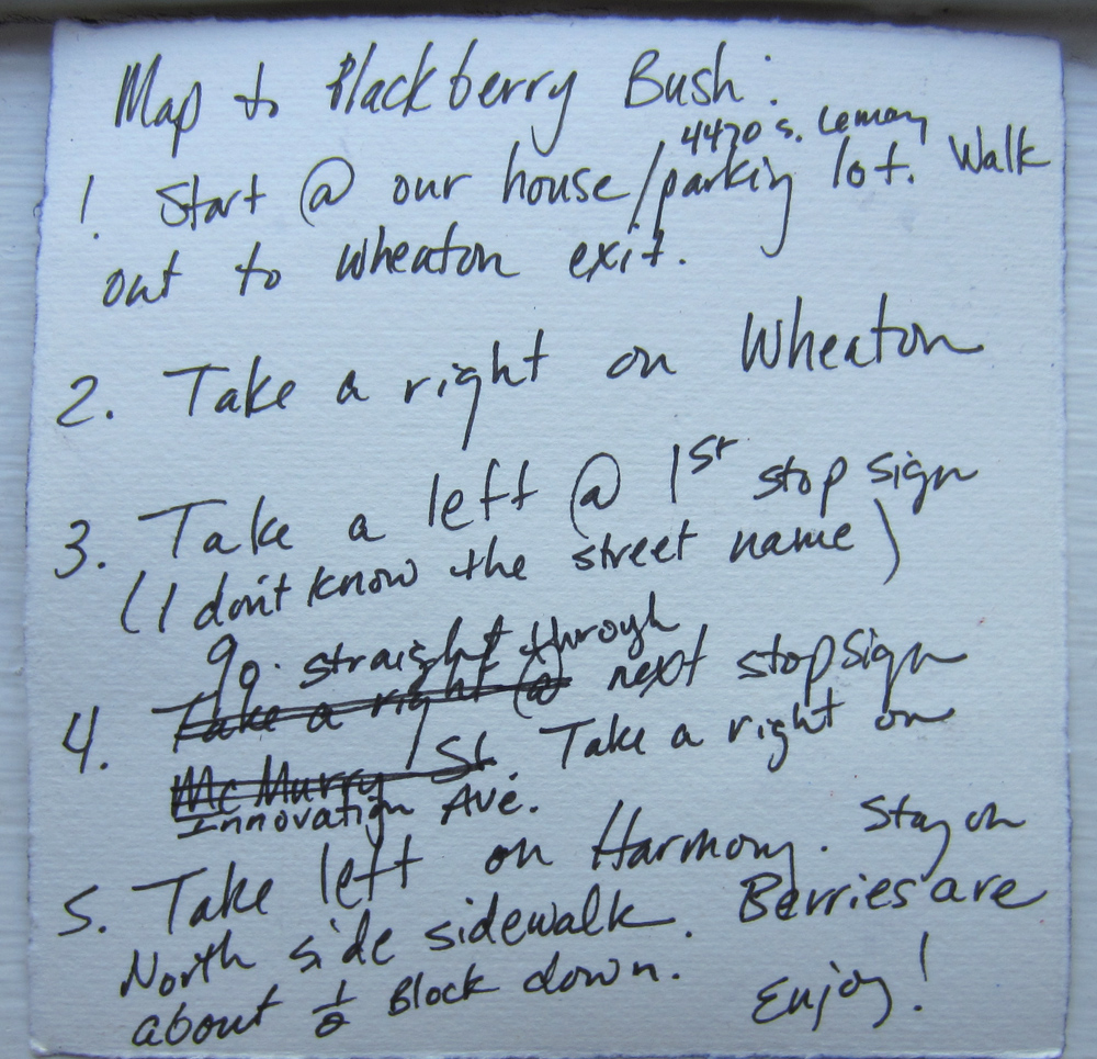 Written directions Published June 8, 2012 at 1000 × 965 in Arting for 365 Day 40: A Map to Blackberries ← Previous