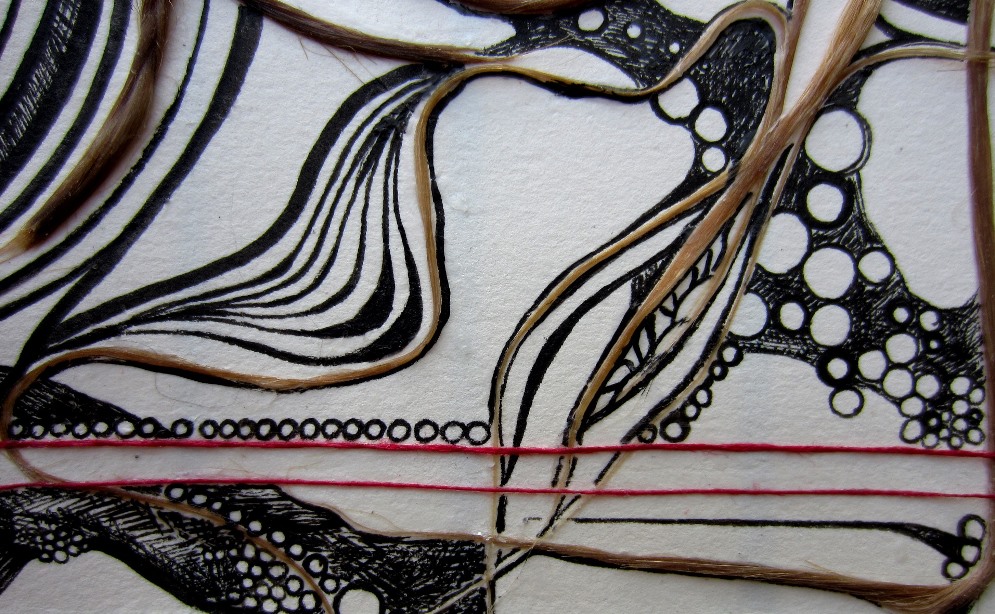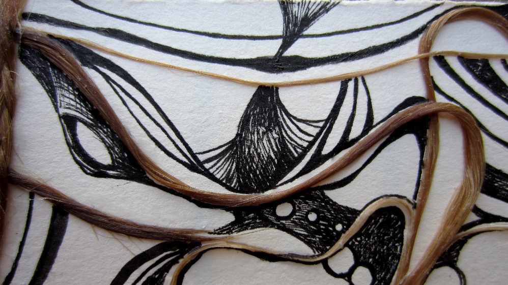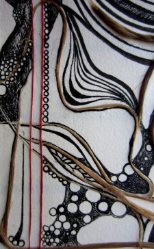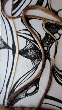 I’ve also experimented with hair in my pieces. It does tend to be off-putting to the audience but links so strongly as a personal connection, “This art is mine.” This piece reminds me of my sister’s style, though you are much more polished.