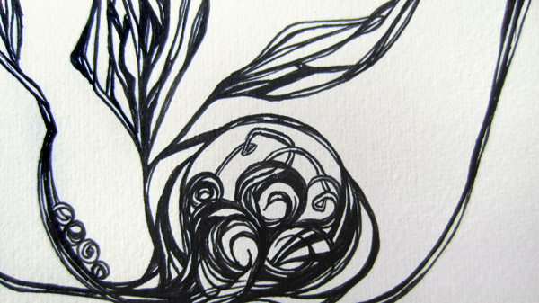 Some of you may also be familiar with my stunning ability to underestimate how long something will take to complete. Yesterday, as I put up my drawing and got ready to call it a night, the boyfriend looked at what I had accomplished. He quickly asked me what I planned to create for day 110’s work. I assured him I’d be able to finish up the piece I had been working on in a few short hours the next morning. He gave me a look of disbelief. Actually, I like to think it was more of a “You are the most fabulous person in the world and I love you dearly, but don’t be ridiculous” kind of look. I glanced down at the barely inked up paper and reluctantly admitted he was right. -Not out loud of course. Out loud I told him I would create a second piece but that “I would not need to use it.”