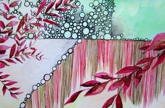 Even when my brain feels completely blank, there are still things that just feel natural to draw and paint. Repeated circles, lines and leaves are all very familiar and comforting to me. I suppose I could liken them to a t-shirt whose years of wear have made it incredibly soft. The difference, I hope is that while the t-shirt might eventually need to be tossed out, the familiar elements will simply be adapted and used in new ways.  Or perhaps like the old t-shirt, I simply save them for the days when comfort and familiarity trump the need for much else.