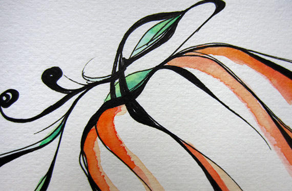 As you might imagine, a few of these activities involved drinking adult beverages – which could be treacherous when one is attempting to not miss a day of making art. No worries – I continued the streak by working on this lighthearted little pumpkin.