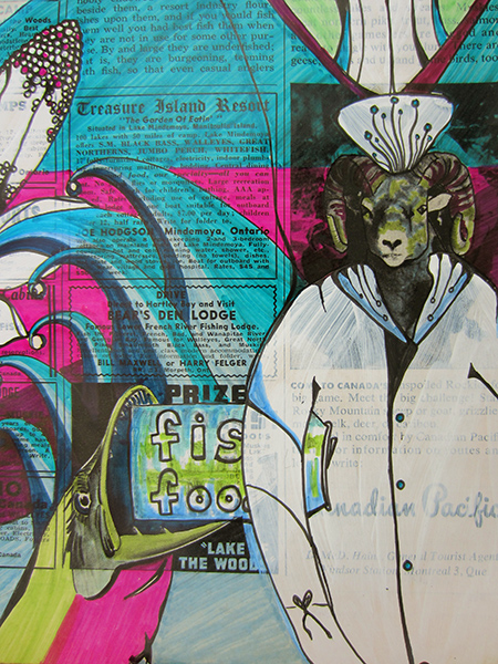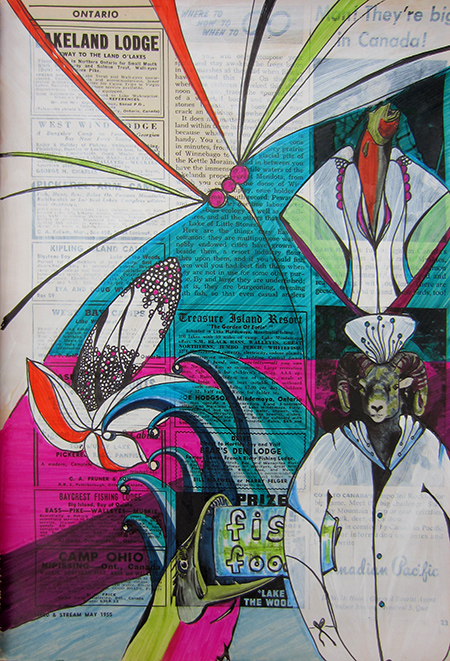 - Day 333, Ink and acrylic on May 1955 Field and Stream magazine