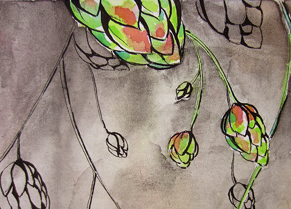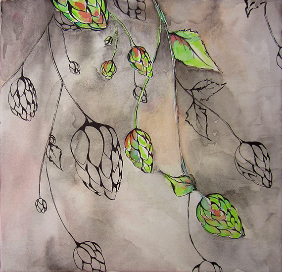 Hops and Berries Posted on September 25, 2013 by Micah 2 12 x 12″ Watercolor and ink on canvas I committed to entering a piece for Poudre Studios’ upcoming Art on Tap show. Initially I thought I’d submit something that incorporated beer in the imagery, but switched gears. Hops are an oh-so-lovely plant! Share this: Share on Facebook (Opens in new window) Facebook Share on Pinterest (Opens in new window) Pinterest Share on X (Opens in new window) X Share on Reddit (Opens in new window) Reddit Share on LinkedIn (Opens in new window) LinkedIn Like Loading... Related