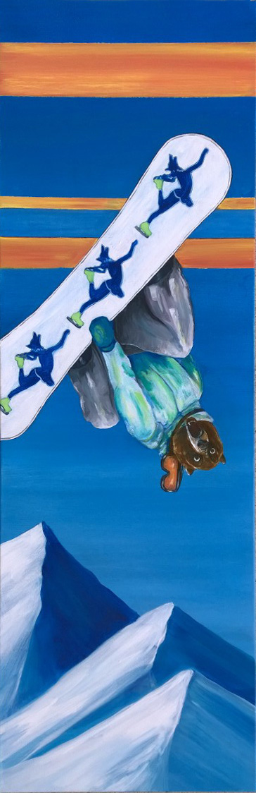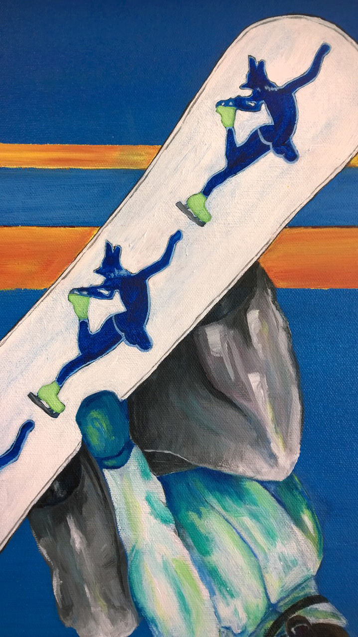 As I mentioned a few posts back, the trickiest thing about this piece was incorporating snowboarding, iceskating, a bear and a wolf without it feeling too contrived. I’m pleased with the final product and just hope there is enough wolf and skate to make Alexis happy.