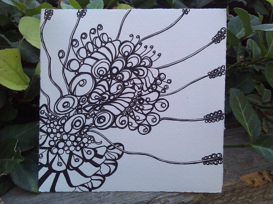 Yesterday, I sat down during a quiet moment to create this bright piece. I quickly realized that the mass of lines resembled little tentacles or worms, whose feelers were wriggling wildly.