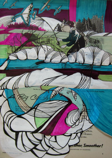 Acrylic adn ink on 1955 Field & Stream Magazine