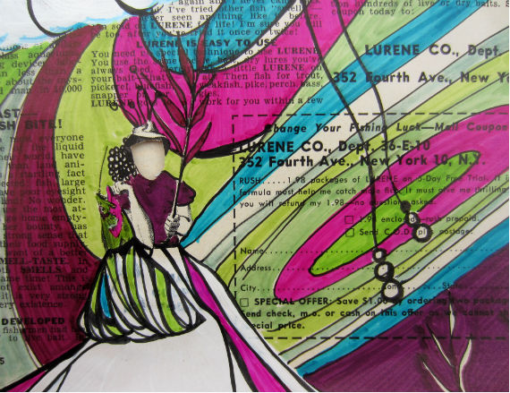 Ink and acrylic on 1955 Field & Stream Magazine