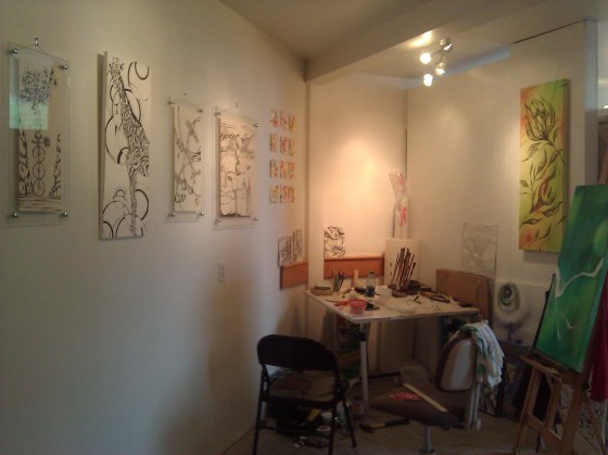 After hanging a few paintings and setting up a small display table on the squishy straw, the boyfriend headed back into town to do some work and I proceeded to try to stay warm in the 30 degree weather. As a few flakes of snow fell through the open roof, I realized I had never before shown my work in such cold temperatures (first #3). All day temps hovered around 35 and the wind blew. The few folks who were at the event huddled around metal fire filled trash cans, turning their bodies rotisserie style in order to stay warm. Needless to say, Saturday was not the best or busiest day for me or any of the other vendors, for that matter. They shut down the event early and I spent the rest of the night at home trying to warm up.