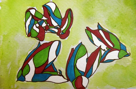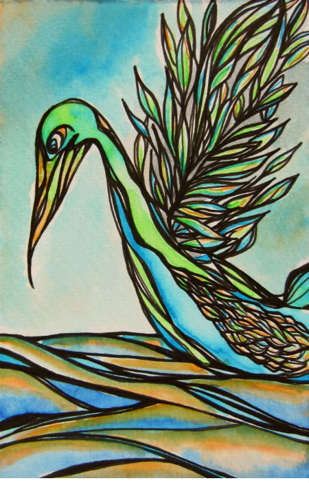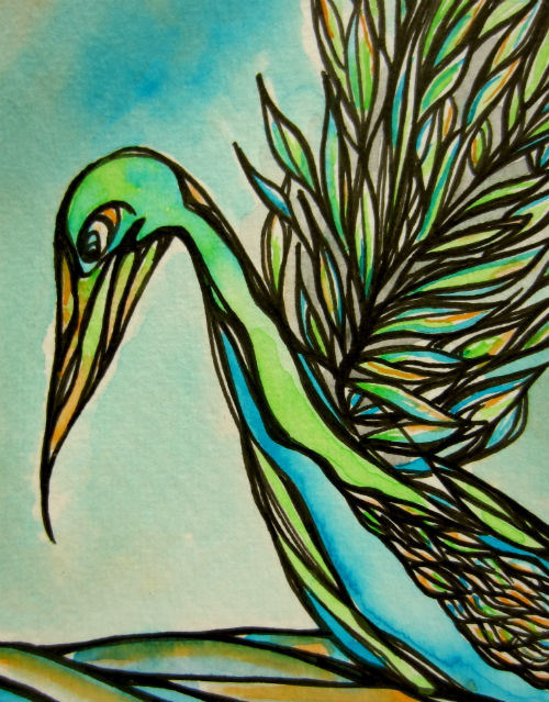 ~3 x 5″ watercolor and ink. Available for purchase https://www.etsy.com/listing/114911133/wings-made-of-leaves-mixed-media