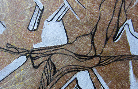 As I loaded up clothes, I realized my mess of art supplies should also probably be organized, at least to some extent, to make moving a bit easier. As I sifted through odds and ends I came across some textured, gold paper. The paper is a bit over the top and actually reminds me of a prom dress my sister had in high school (early 90s). I decided the textured find would be perfect to use for day 172’s piece.