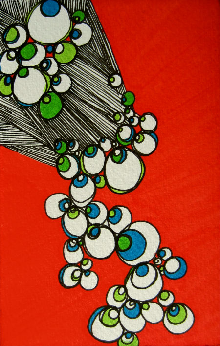 Yesterday I came across some of the fluorescent pink, rectangle filled paper I had kept. As the evening hours rolled in, I sat down and created this piece. I enjoy that the design in very soothing and organic while the color is very bold – almost obnoxious even.