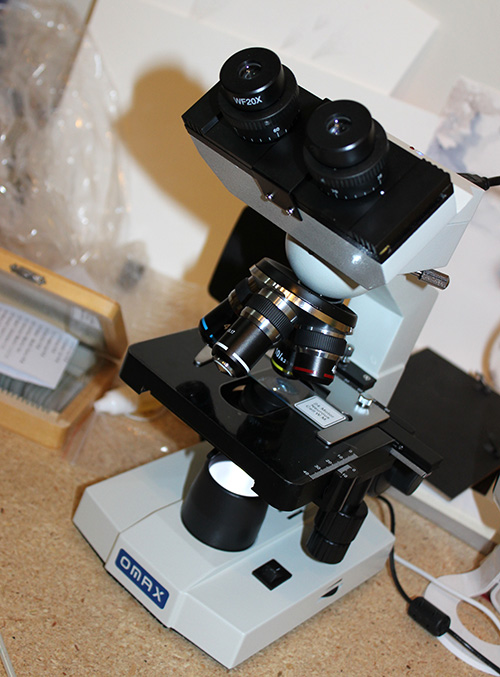 The boyfriend has always contended that he “does not do gifts” for birthdays, Christmas – any special occasion, actually. Instead, he buys gifts if he sees something that is just perfect for a person. So when a package arrived for me this weekend – a few days before my turning 36 – I was assured that it was “not for my birthday.” Coincidentally, I have been told this same thing around this very same time for the past few years. The package contained a microscope! Today I began a painting based on the motor neurous slide I looked at. I love my not-a-birthday-present, present!