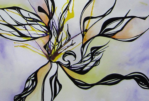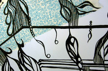 Inspired by day 163’s piece in which I created drawings by finding pattern in the paint, I hoped to explore a similar path for yesterday’s work. I started the process by pushing beets onto paper in order to create the initial design. From there, the stains would act as the base on which my ink drawing would build from – working around the stains on the paper. Once the drawing was created, I cut the paper, working within and around the ink drawing. One step in the process therefore directed the next step.