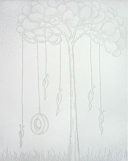 The other night after my grandma passed away, my sister sent me the following piece of writing and asked if I could do something with it. I absolutely loved what she wrote and was easily inspired. Because her poetry invoked very concrete images, my interpretation is rather literal. I did, however, decide I wanted to abstract that imagery. I may add some more of the brighter blues down the road, but not just yet. I love this piece – probably for more than one reason.