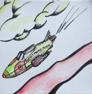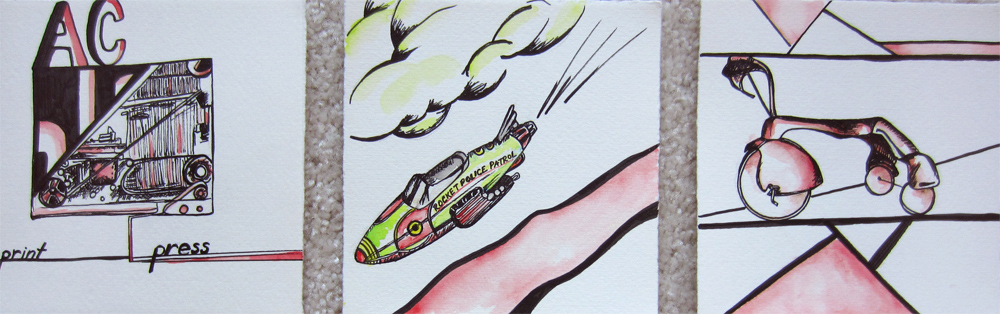 Each square 4.75 x 4.75″ Ink and watercolor on paper