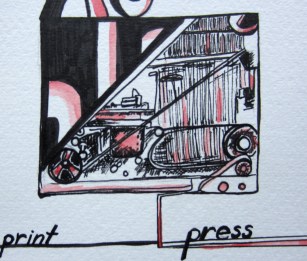 Yesterday we took a ride down to the museum to check them out. It was so great to see the collection again, along with all of the other old treasures they had there. Day 54’s project is drawings of a few antiques we came across: an old printing press, a cool little toy plane and a trike.